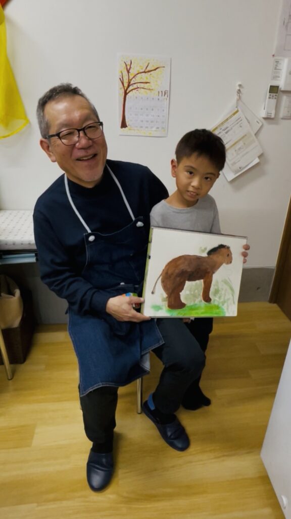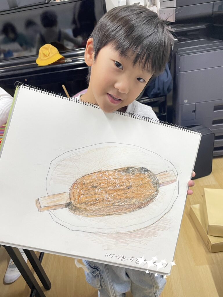 ステップ絵画教室では、好きなものを好きな画材道具で描くから、みんな意欲的で集中して取り組みます。