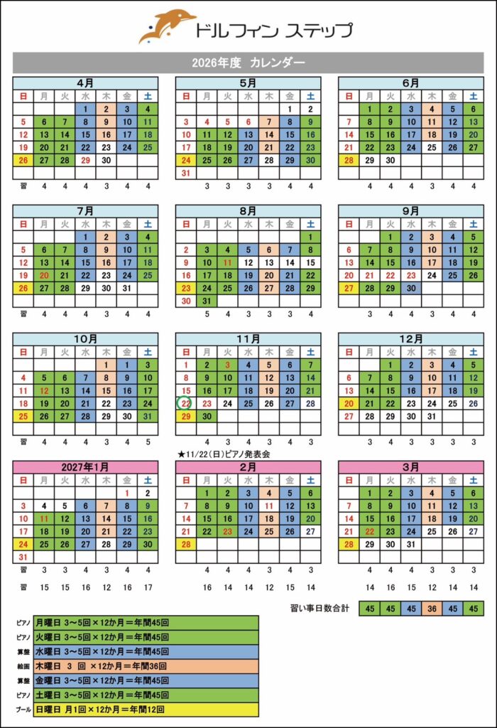 2026年度ドルフィンステップカレンダー